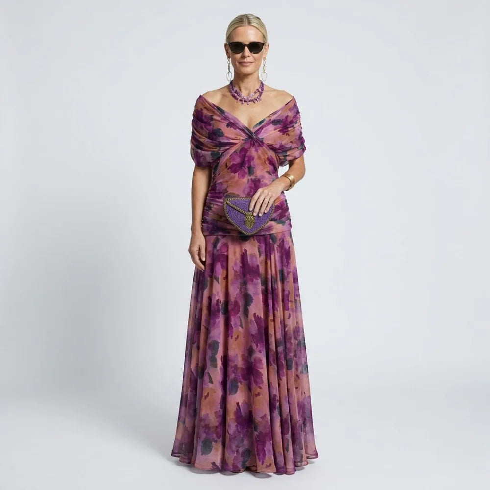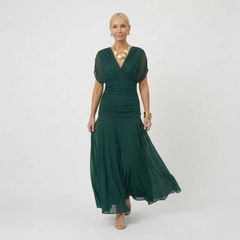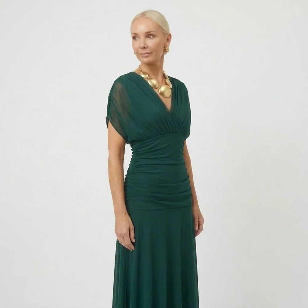 Elegantes Damen-Maxikleid mit V-Ausschnitt für festliche Anlässe. Festliche Maxikleider mit V-Ausschnitt sind SS26 das meistgesuchte Kleid-Konzept für Hochzeiten und Galas.